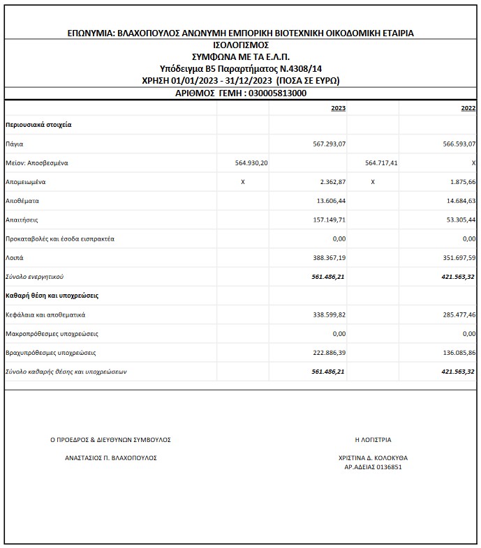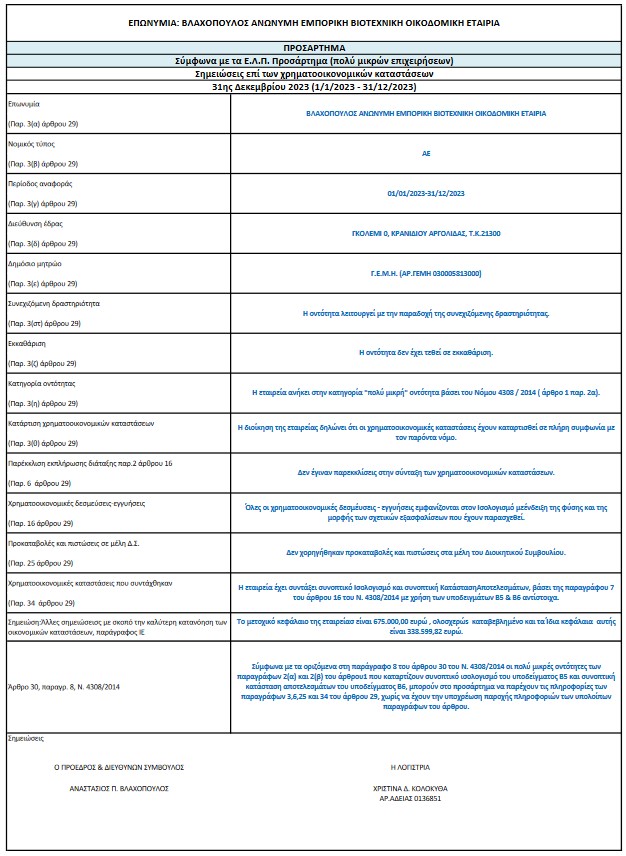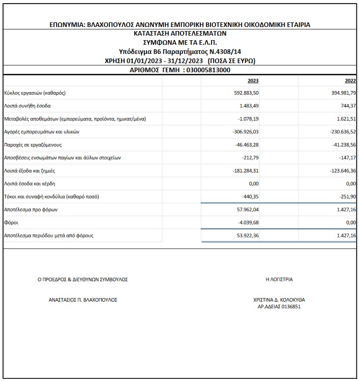 ΟΙΚΟΝΟΜΙΚΕΣ ΚΑΤΑΣΤΑΣΕΙΣ ΒΛΑΧΟΠΟΥΛΟΣ Α.Ε 2023
