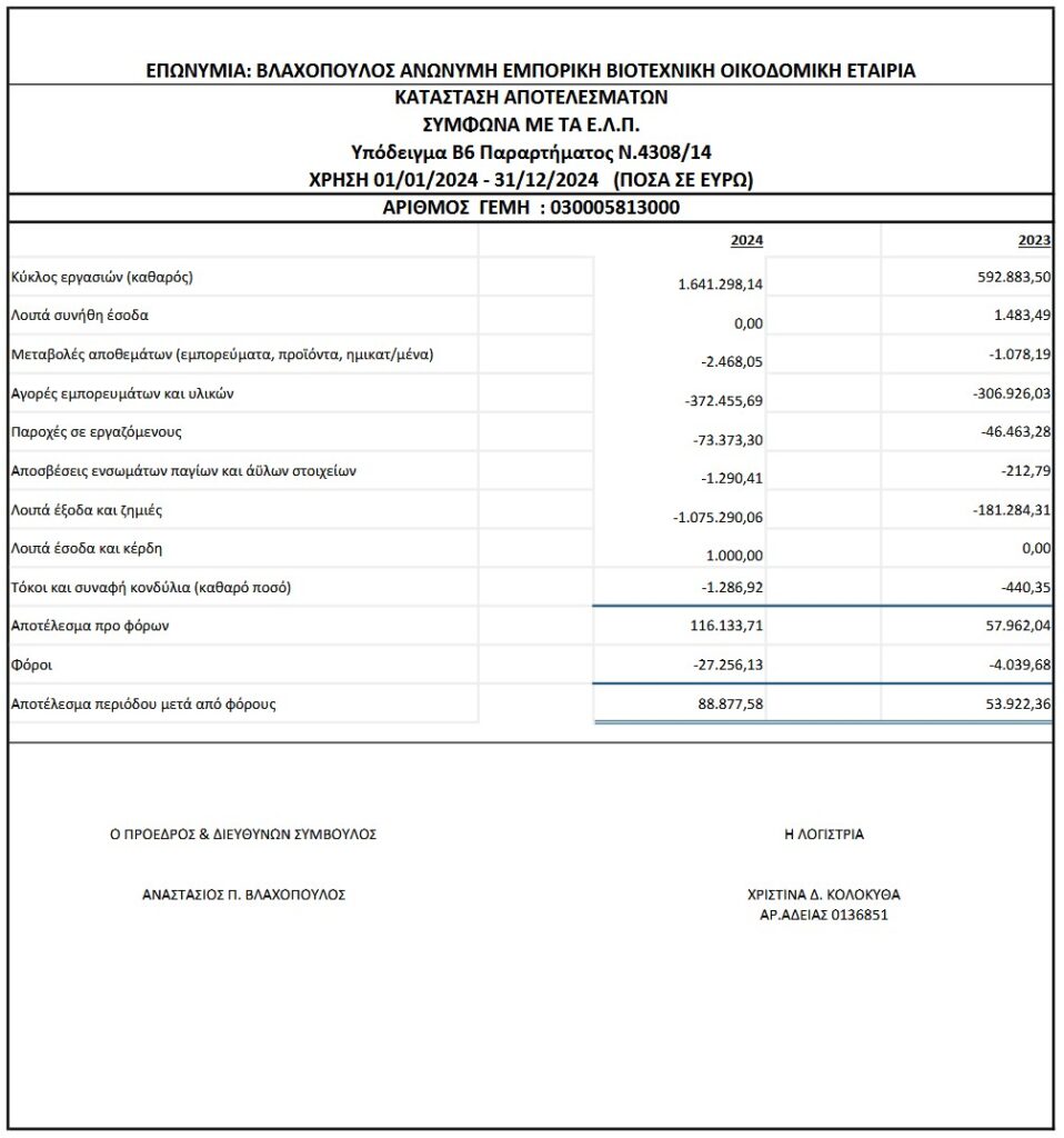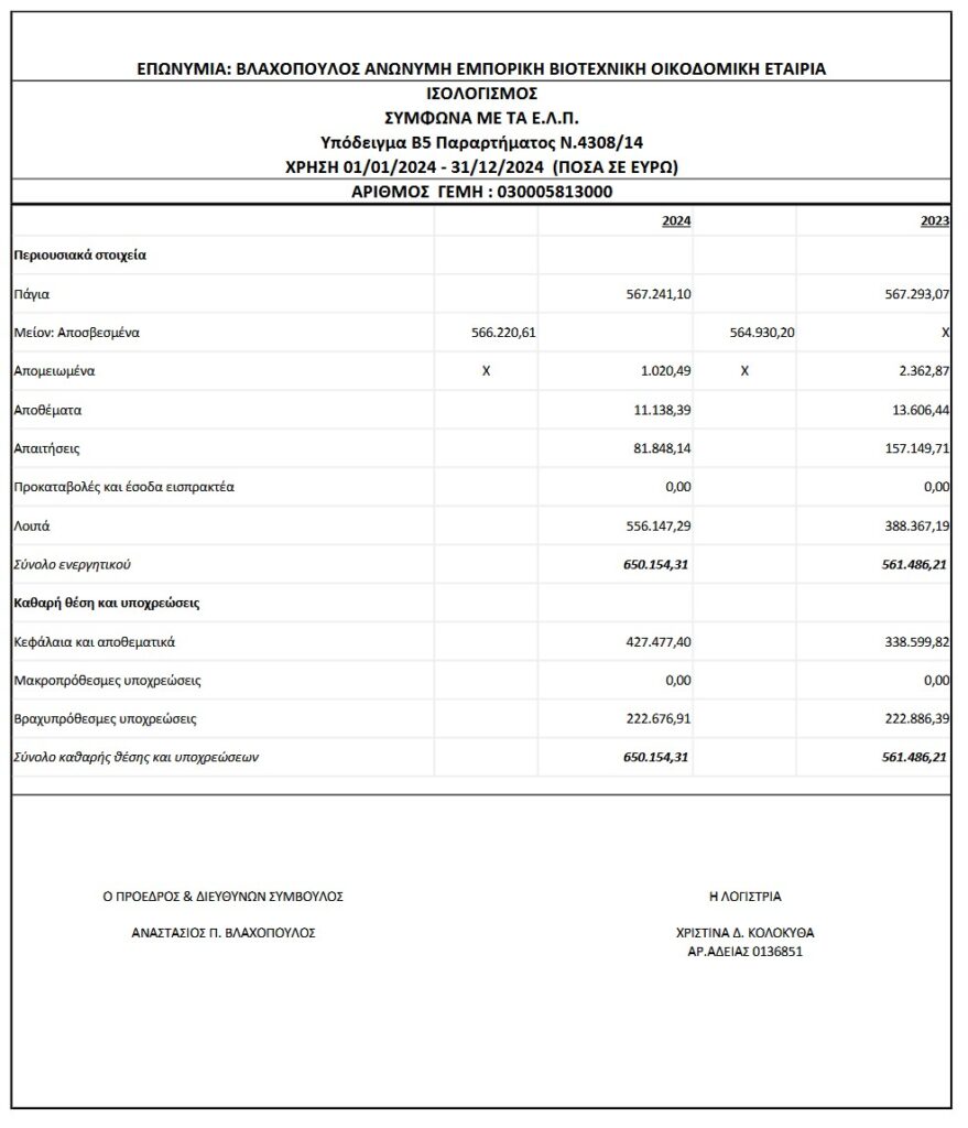 ΟΙΚΟΝΟΜΙΚΕΣ ΚΑΤΑΣΤΑΣΕΙΣ ΒΛΑΧΟΠΟΥΛΟΣ Α.Ε 2024
